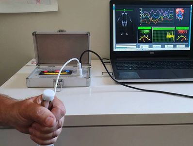 By simply holding the sensor in the palm of the hand, I can obtain an understanding of the patient's health within minutes via specific electromagnetic wave signals.